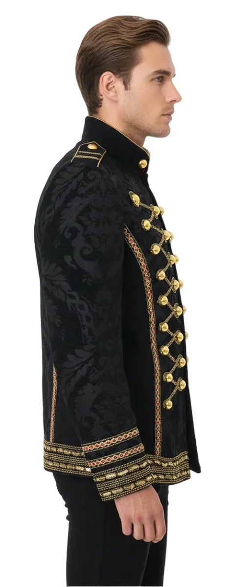 Een mooie Carnavalsjas Freddy Luxe voor Heren. De jas is op de schouders , aan de voor- en achterzijde en op mouwen afgewerkt met prachtige gouden details.