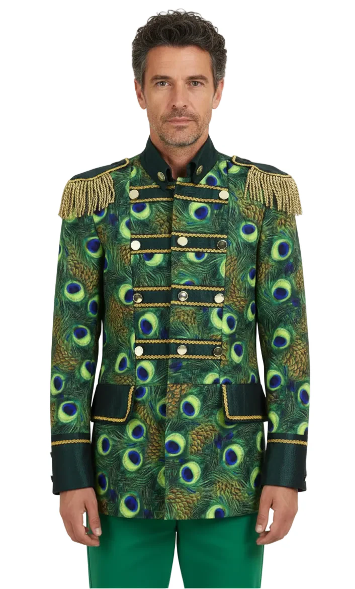 Een mooie carnavalsjas met gekleurde accenten. De jas is op de schouders afgewerkt met prachtige details.