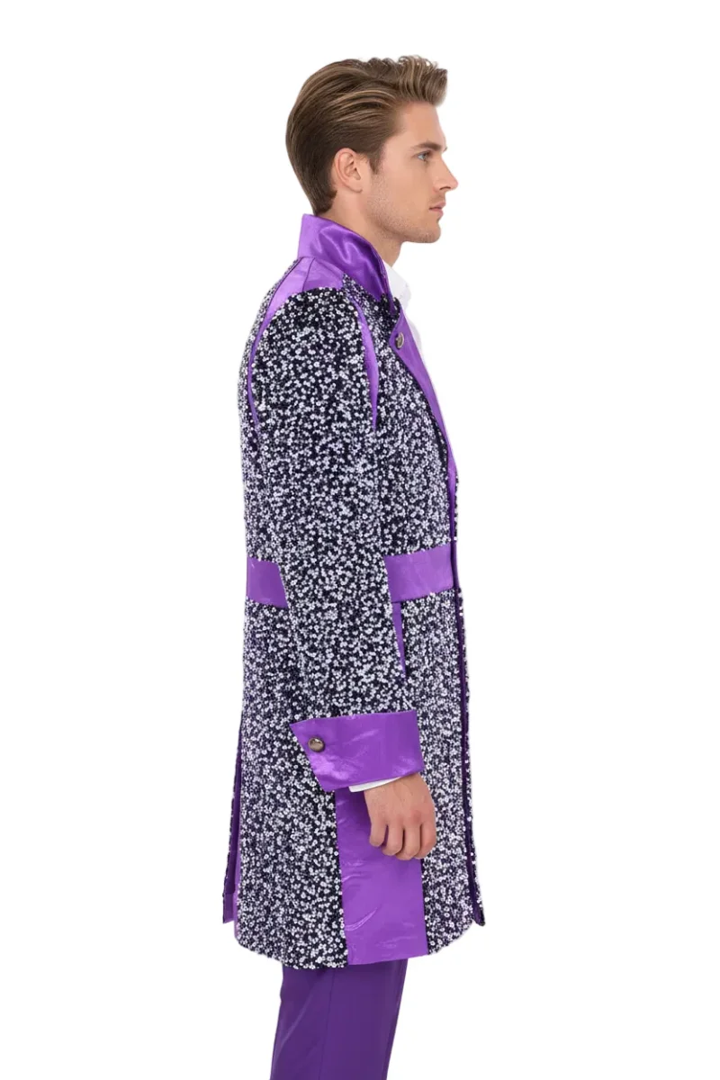 Details: Opstaande kraag, koper kleurige knopen en over de gehele jas zitten pailletten