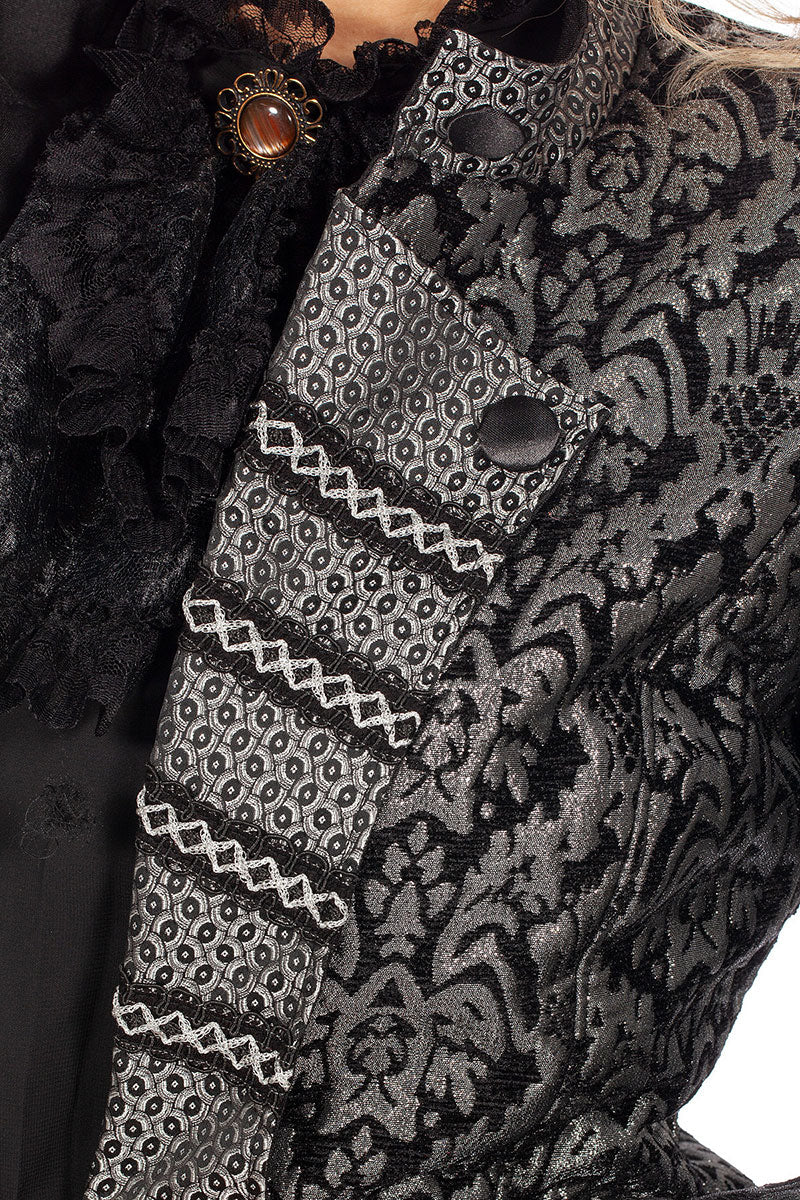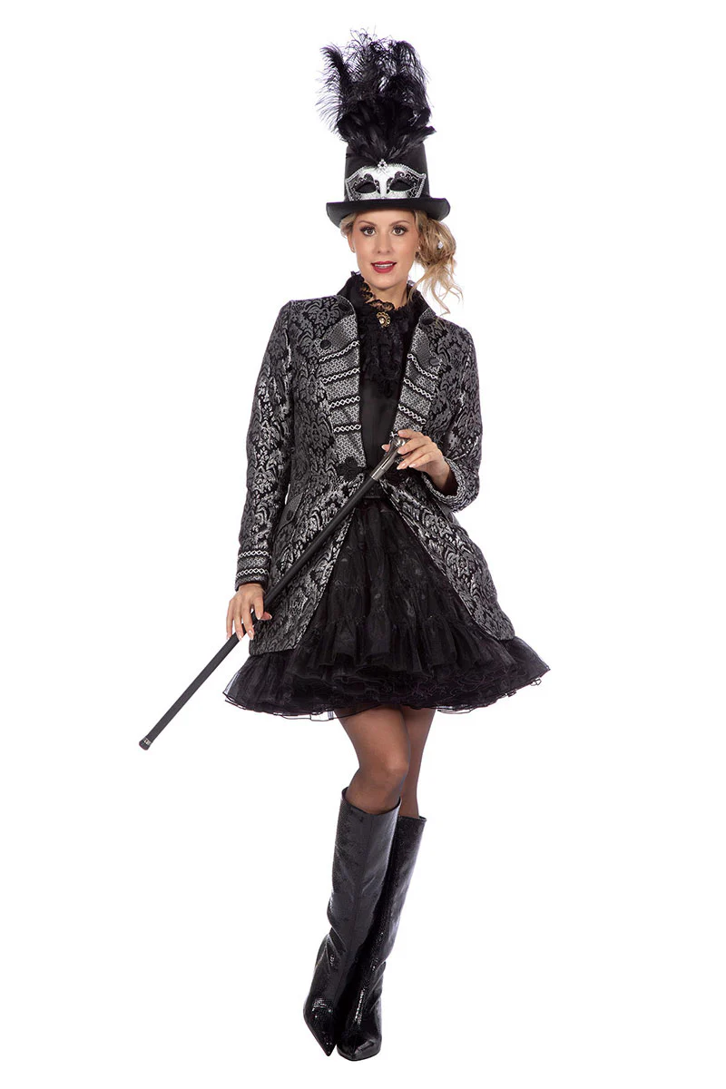 Een mooie Luxe carnavalsjas Brokaat Zwart Zilver voor Dames.